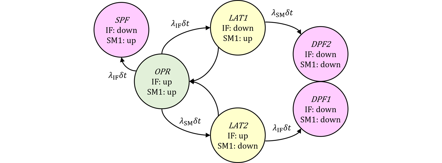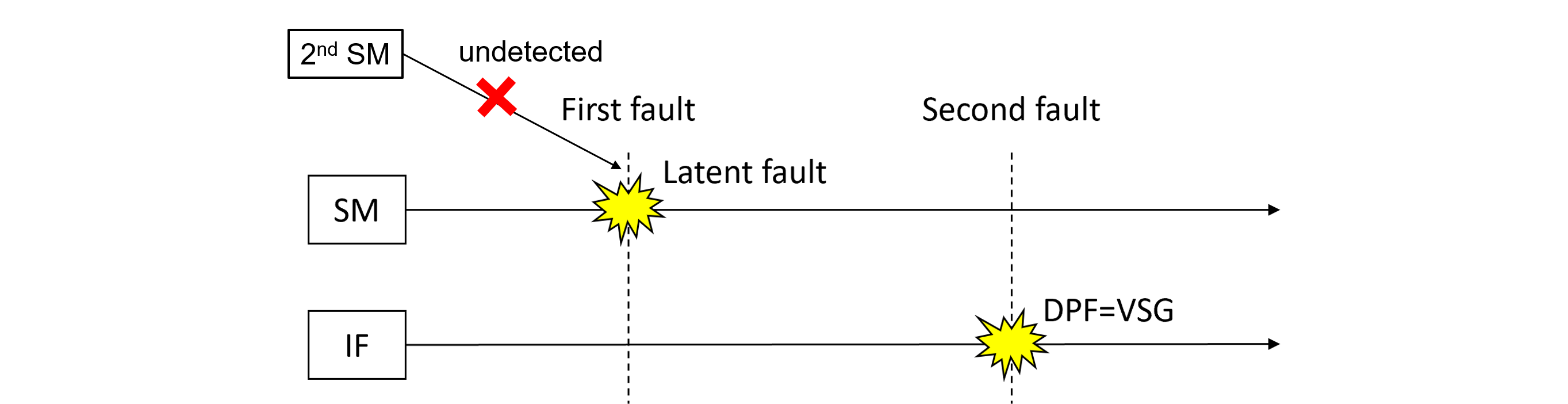 SMに1点目のフォールトが発生した場合を考えると、2nd SMにより検出されない場合それはLFとなる。将来的にIFにフォールトが起きる場合、LFとの組み合わせ(DPF)によりVSGが起きる。